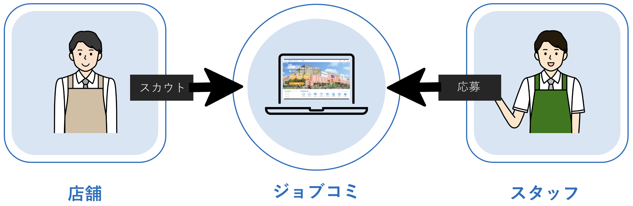 ららぽーと等で働いた経験者(OB/OG・現役)と、店舗(テナント)をつなぐマッチングサービスです。求人の閲覧・応募、スカウト、メッセージでのやり取りができます。